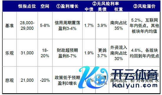 因此,基准情形下,市集指数层面空间有限,空间来自景气结构或巧合回撤。综合盈利、无风险利率和风险溢价,咱们测算恒指核心28000-29000点,乐不雅情形31000点驾御,悲不雅情形21000点隔壁。