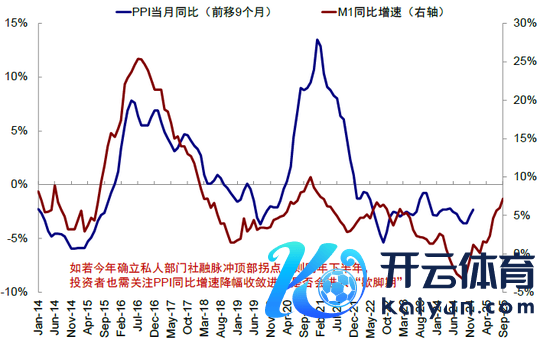 图表11:M1同比增速又最初于PPI同比约6-9个月,对应PPI持续抬升到来岁一二季度驾御
