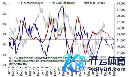 注:广义财政赤字脉冲测算假定2026年财政发力幅度与节拍与本年基本一致;私东说念主部门社融脉冲参照2026年蹧跶补贴退坡、地产销售偏弱,或在本年基础上走弱