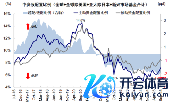 国外资金:中国资产眩惑力与部分“去好意思元化”需求促进举座改善。EPFR炫夸,年头于今国外主动资金(更具长线资金代表性)虽依然净流出港股97.4亿好意思元,但流出范围较2024年同期(112.5亿好意思元)收窄;被迫资金流入庞大,范围较旧年翻倍。从成立角度看亦然如斯。约束9月底,国外主动资金成立中国市集比例升至7.2% 的年内高点,低配幅度也从7月年内低点(-1.61ppt)收窄至-1.39ppt。咱们合计这一积极变化主要来自:1)中国资产眩惑力擢升且发扬最初专家;2)特朗普策略不细目性与“去好意思元化”叙事,部分国外投资者存在散布化投资需求。