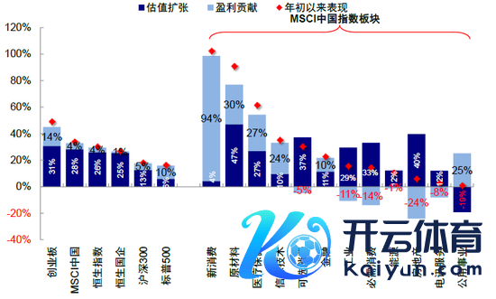 图表2:本年港股领涨的板块盈利孝顺光显,违犯举座指数上则基本都是由估值孝顺