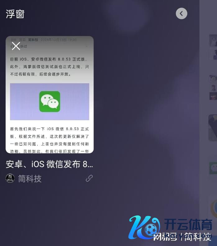 悬浮窗进行优化,往常将现实添加至悬浮窗后,该现实会在悬浮窗界面的中间位置,但更新后现实则来到了悬浮窗界面的顶部。