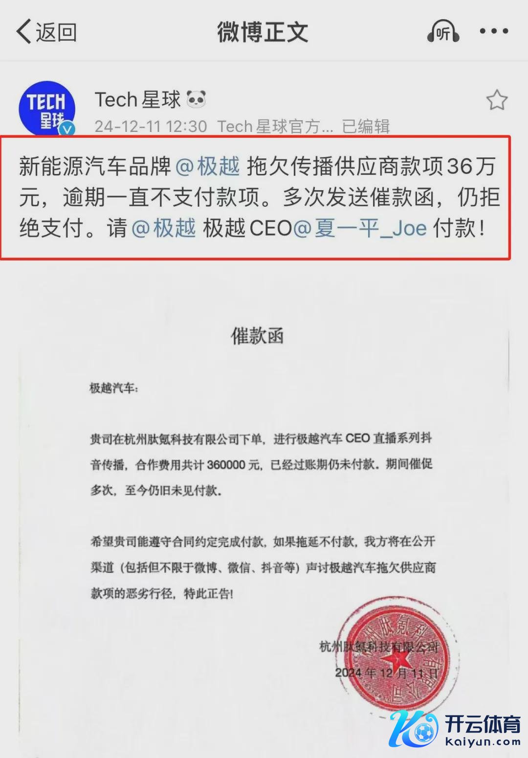 莽撞道理便是 百度给钱然则吉祥充公到百度的钱然后百度以为这钱花的太快派东谈主走访然后发现极越里面有退让。。。莽撞就这样回事吧。。。完事儿在这事儿还没透澈摊牌之前昨天36氪旗下的Tech星球用官微来向极越汽车要账: