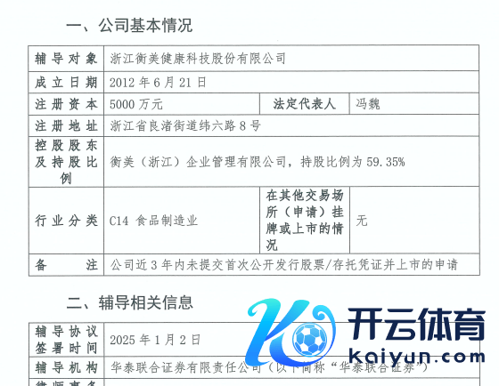 财中社1月14日电浙江衡好意思健康科技股份有限公司(下称“衡好意思健康”)2025年1月2日与华泰证券(601688)全资子公司华泰聚会证券有限包袱公司签署上市指导公约九游体育娱乐网,并于近日向浙江证监局报送了上市指导备案阐明。