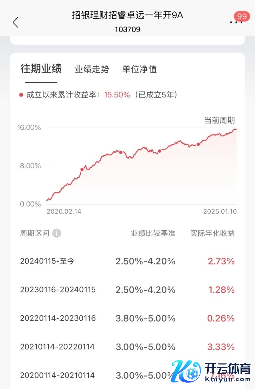 记者发现,该产物上一投资周期的功绩相比基准为2.50%—4.20%,自2024年1月15日于今该产物实质年化收益率为2.73%,略高于功绩相比基准下限。