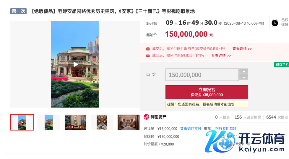 8月3日,红星新闻记者在阿里拍卖平台发现,上海一栋老洋房将在8月13日拍卖,起拍价1.5亿元。
