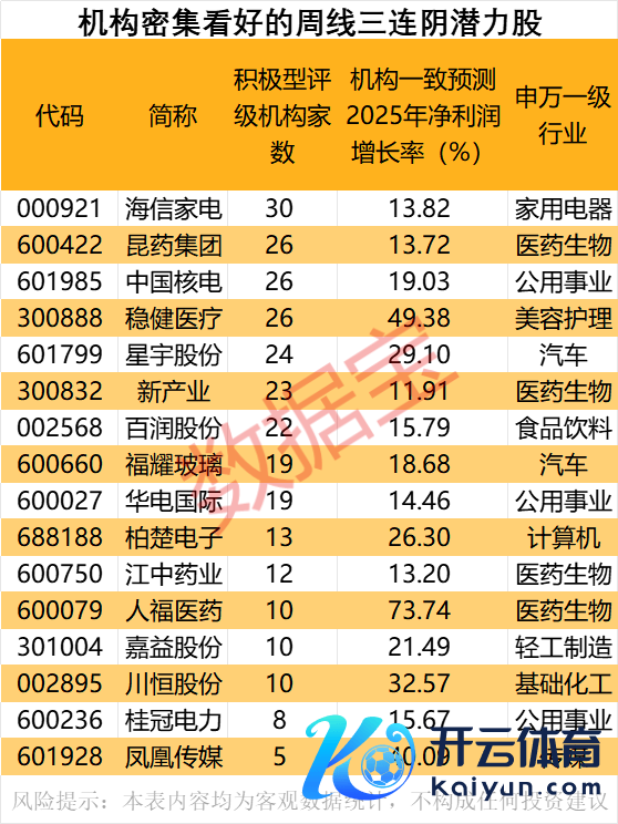 机构密集看好的周线三连阴后劲股机构密集看好的周线三连阴后劲股